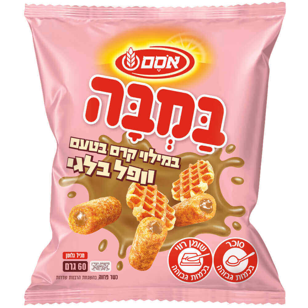 במבה במילוי קרם בטעם וופל בלגי, אסם